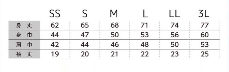 S 身丈/65 身幅/47 肩幅/44 袖丈/20